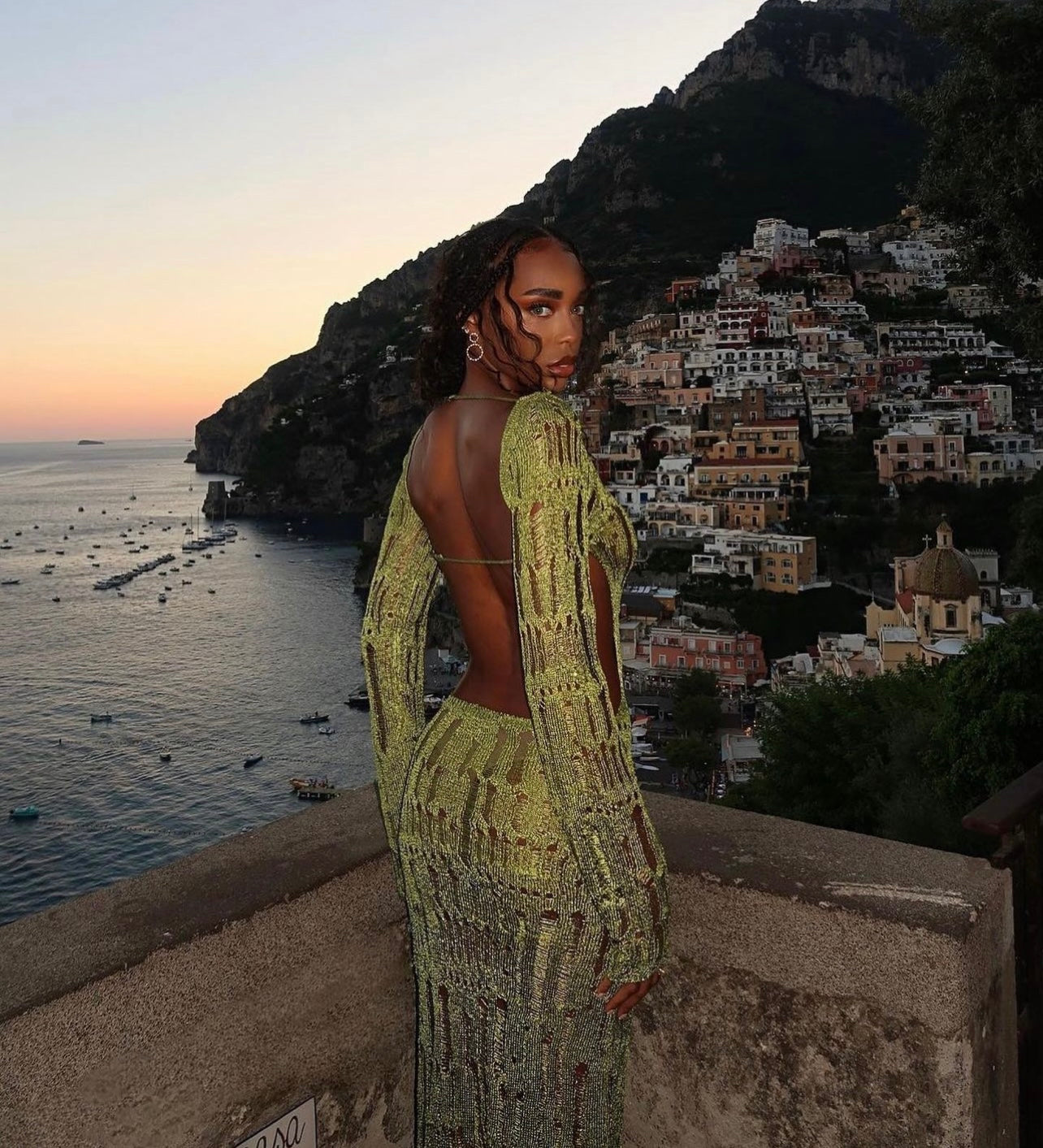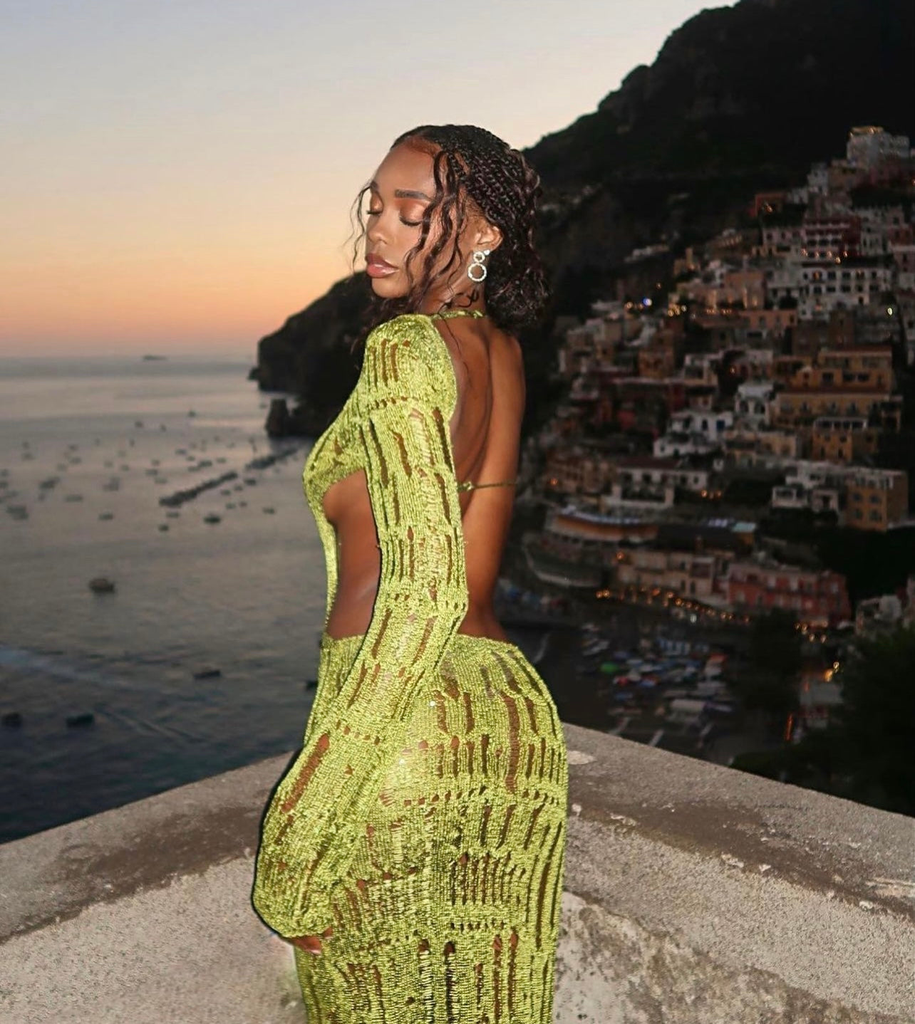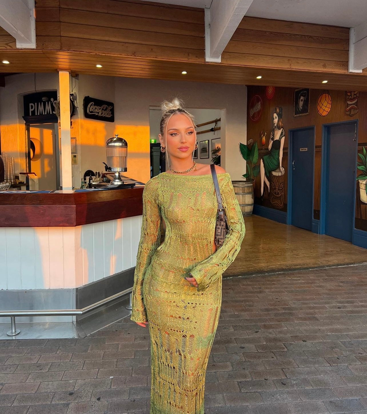 Dress has a few pulls. Please be careful with jewelry and bags snagging on the dress.