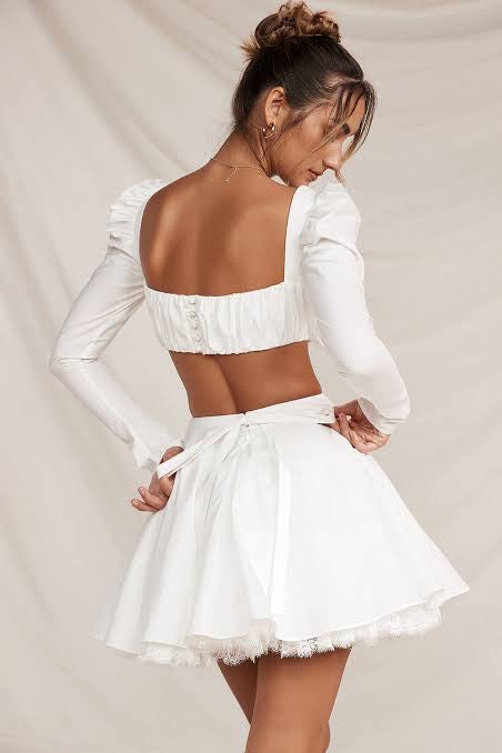 THE skirt for warm summer days, 'Nahla' is ultra feminine and will be a standout in your collection. Cut from stretch cotton, the striking silhouette is fitted with a discreet tulle fabric to enhance the voluminous shape. We love how the pretty lace trim peaks below the hemline, complete with an oversized bow to the back for feminine drama.