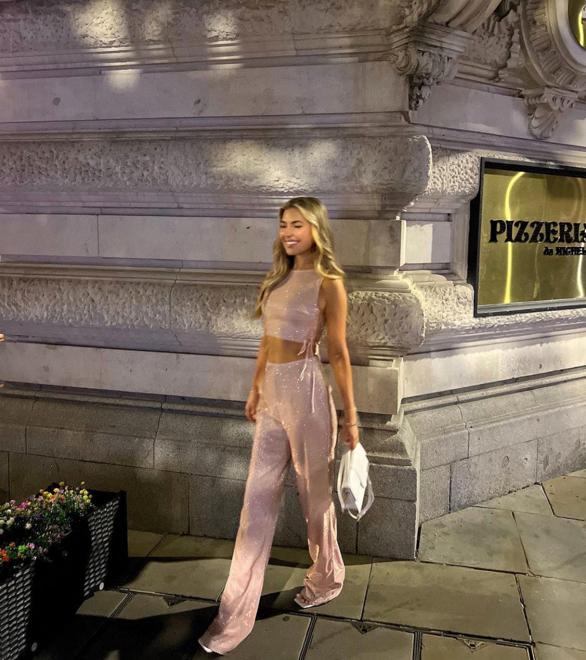 Sparkley lace up side on top 2 piece set